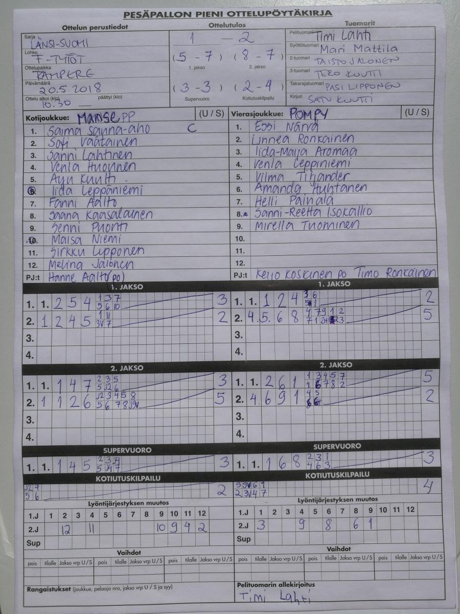 | 20.5.2018 10:30 | Manse PP | PomPy F-Tytöt | 1-2 (5-7, 8-7, 3-3, 2-4) | näytä | |