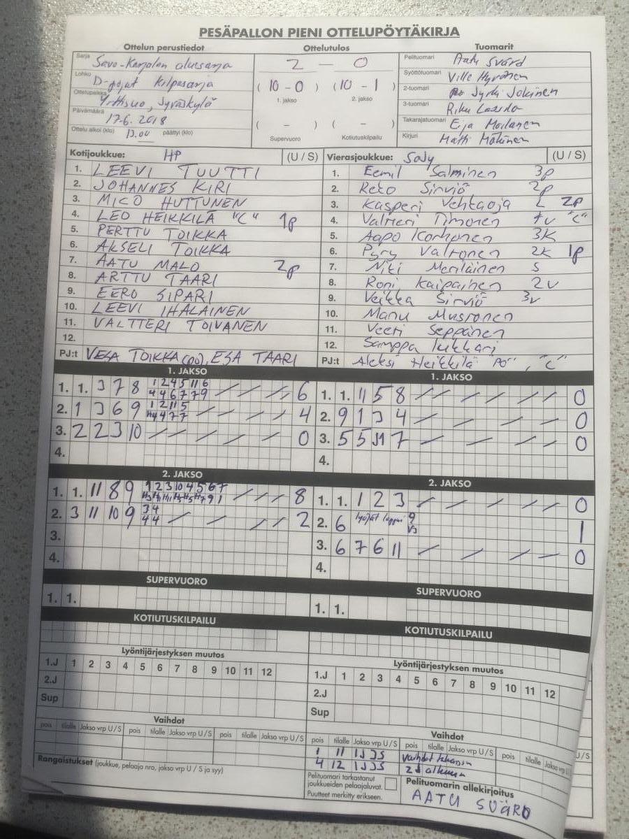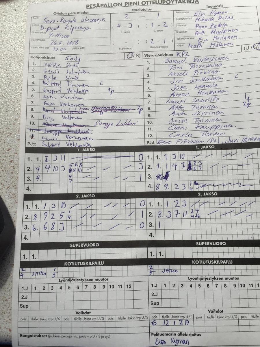 | 17.6.2018 00:01 | Jyväskylä | HP | SoJy | 2-0 (10-0, 10-1) | näytä |