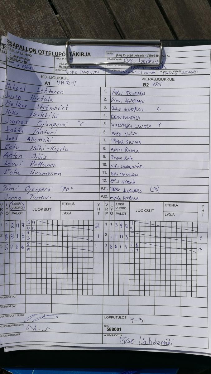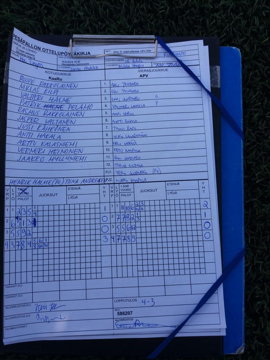 | Välierä B1 - A2 | 16.6.2018 18:30 | Herralahden keinonurmi | kou | UP-V D05 | APV |