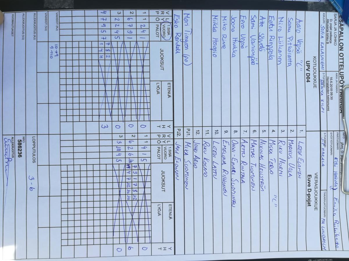 | 15.6.2018 15:30 | Ulvilan Automaatio Areena | kou | UPV D04 | 6-5 | näytä |