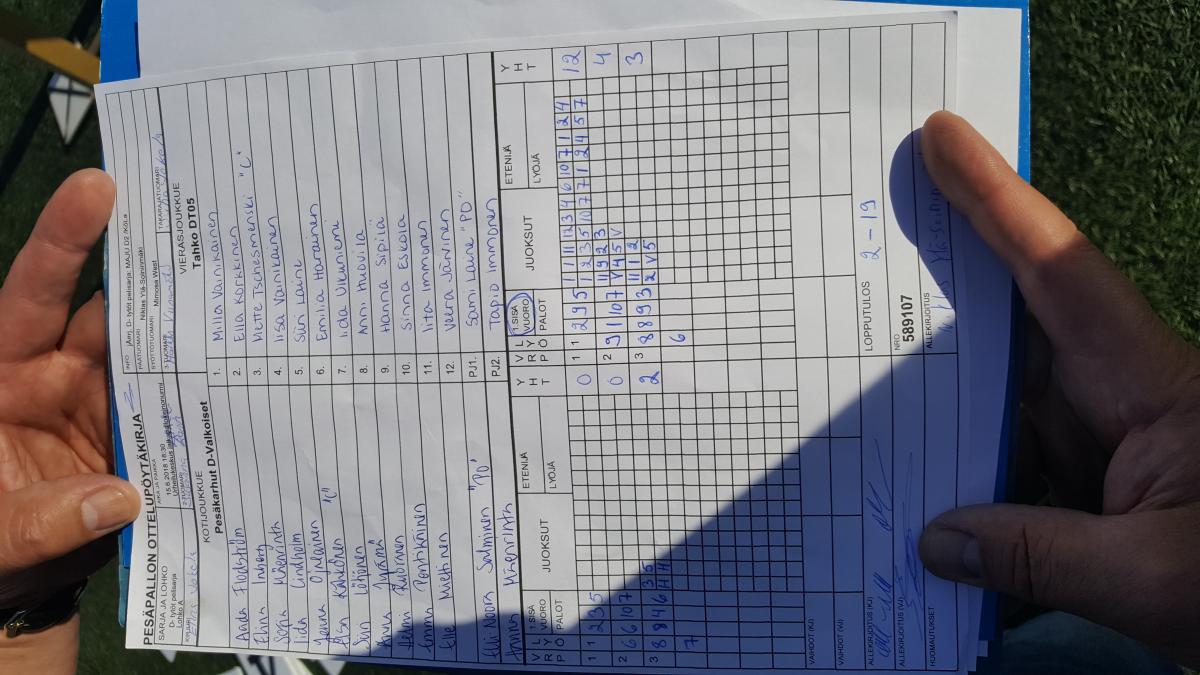 | Alempi jatkosarja | 16.6.2018 14:00 | Urheilukeskus jalkapallokeinonurmi | SMJ D-Punainen | APV | Tahko DT05 |