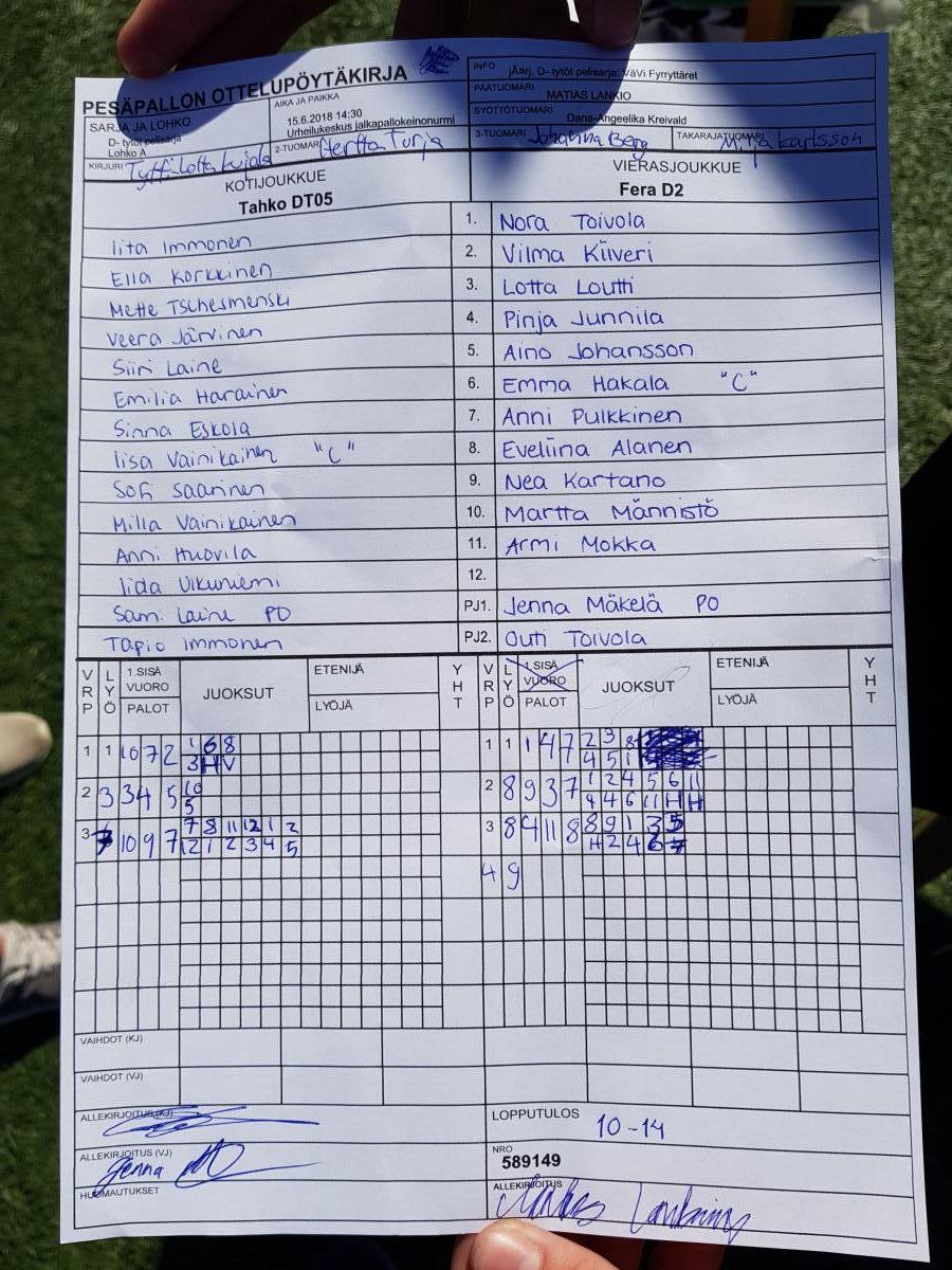 | D- tytöt pelisarja - Lohko A | 15.6.2018 17:30 | Urheilukeskus jalkapallokeinonurmi | Fera D2 | VäVi Fyrryttäret | Tahko DT05 |