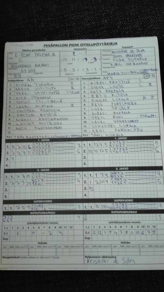 | 21.5.2018 18:00 | AA -07 | APV musta | 2-1 (13-11, 7-9, 5-5, 3-1) | näytä | |