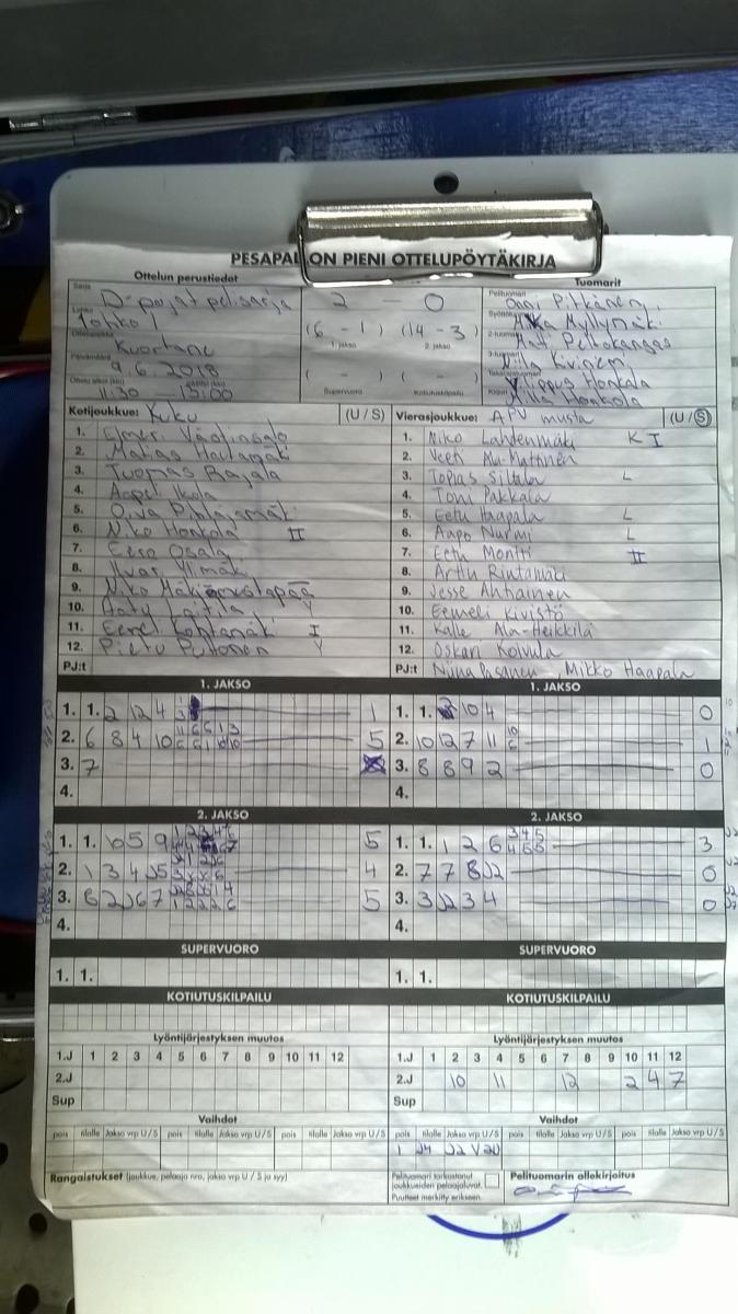 | 9.6.2018 14:00 | KuKu | APV musta | 2-0 (6-1, 14-3) | näytä | |