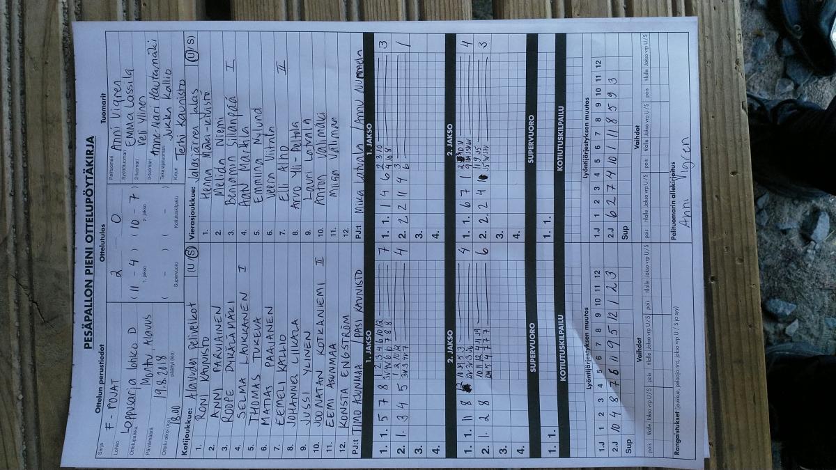 | 6.6.2018 18:00 | AA -08 | APV | 2-0 (22-2, 21-1) | näytä | |