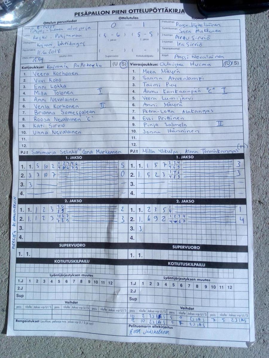 | 11.6.2018 | KPK ET | OuHu e-tytöt | 0-1 (5-6, 5-5) | näytä | |