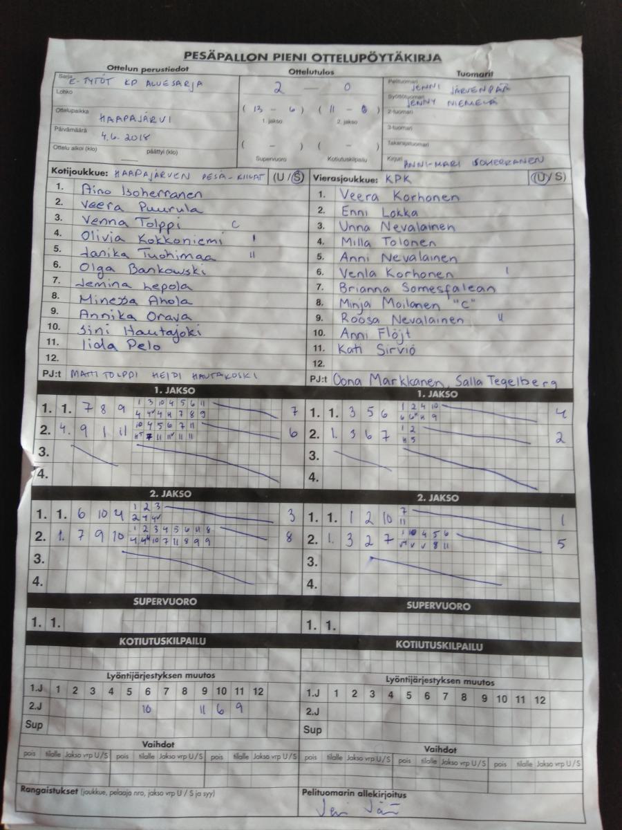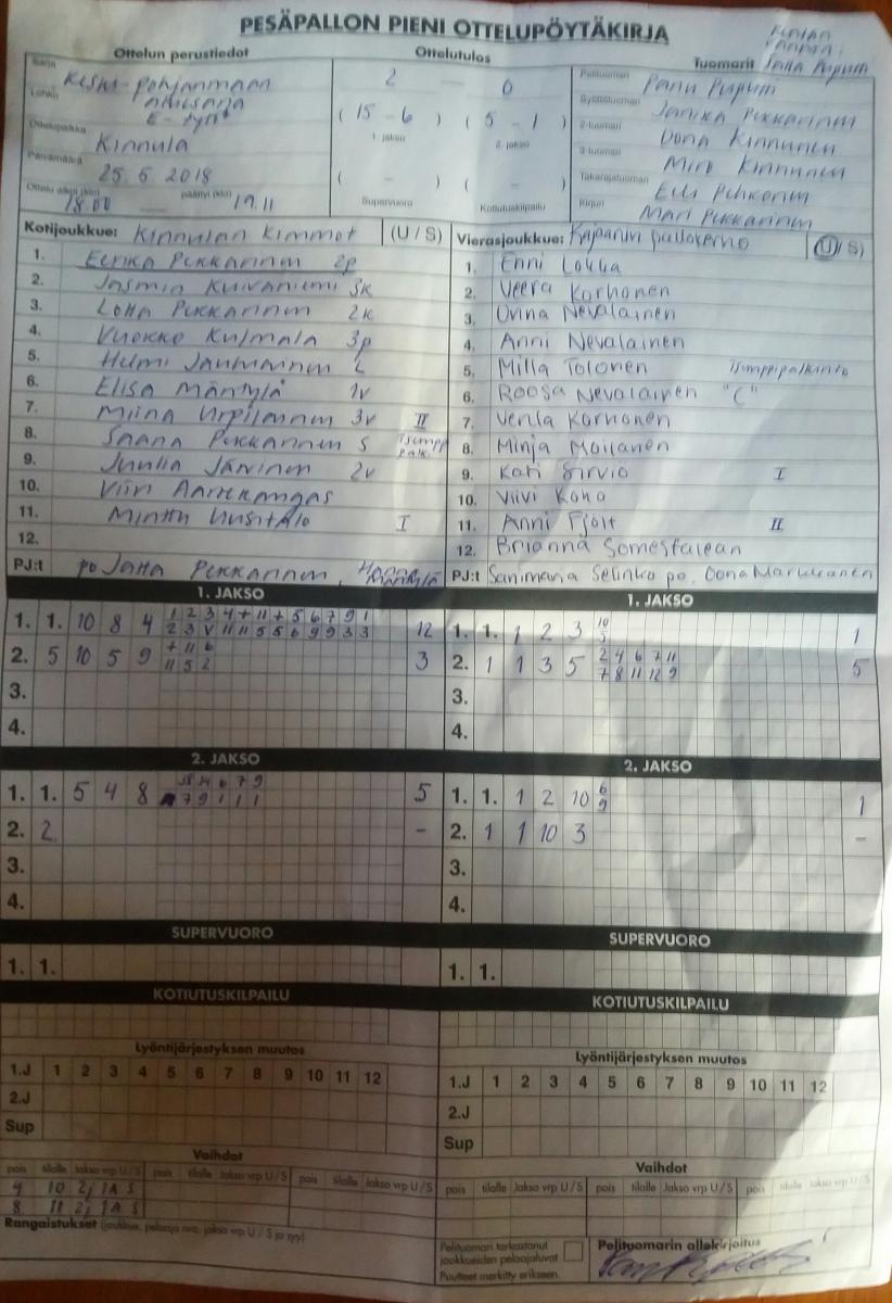 | 4.6.2018 | HP-K | KPK ET | 2-0 (13-6, 11-6) | näytä | |