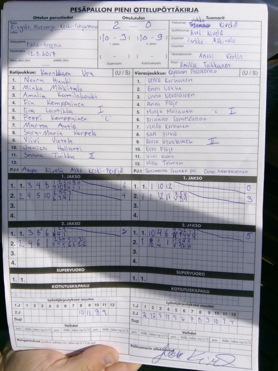 | 12.8.2018 | Ura | KPK ET | 2-0 (10-3, 10-9) | näytä | |