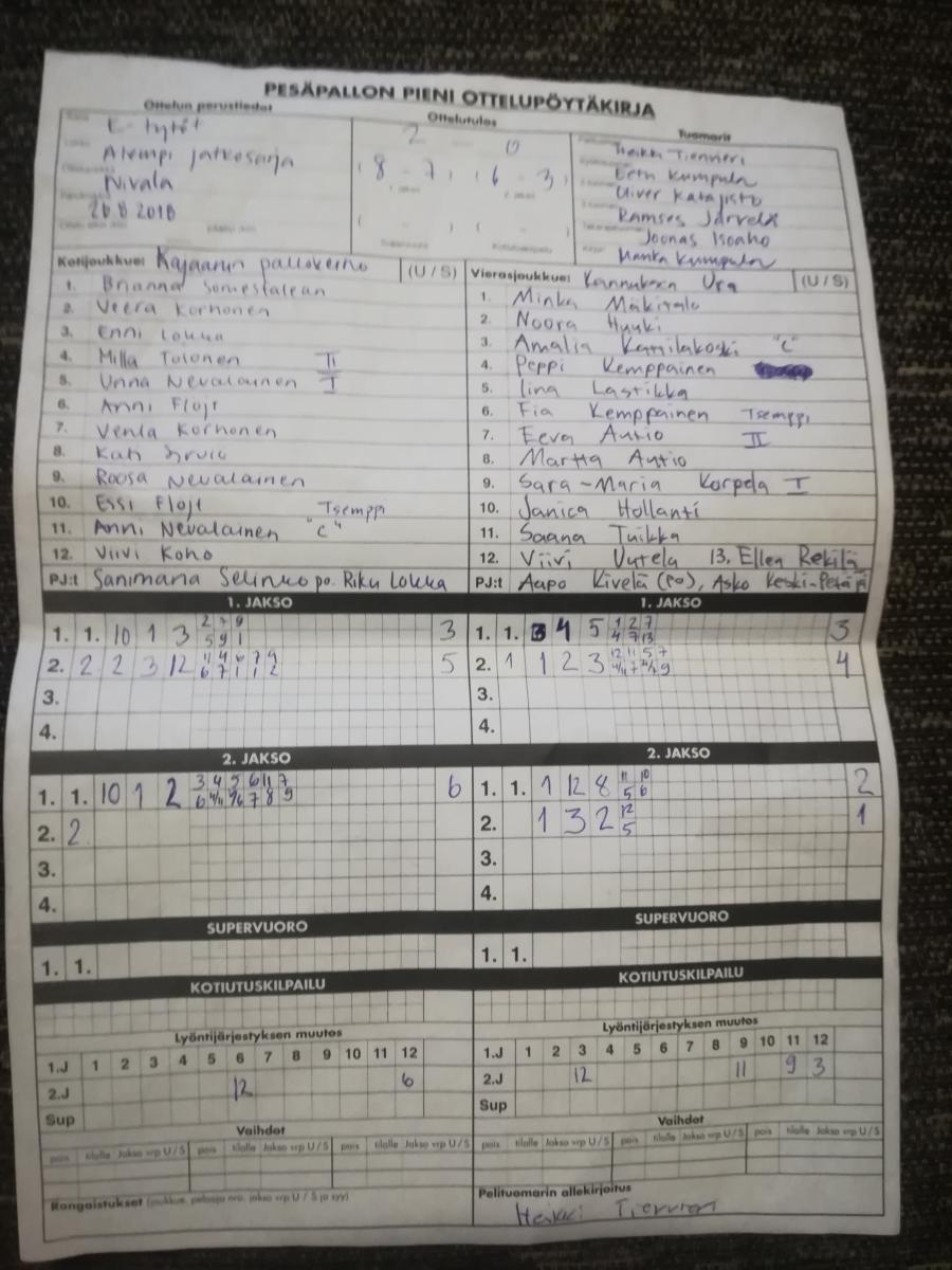 | 1.8.2018 | KPK ET | NiPe | 2-1 (9-5, 7-8, 5-1) | näytä | |