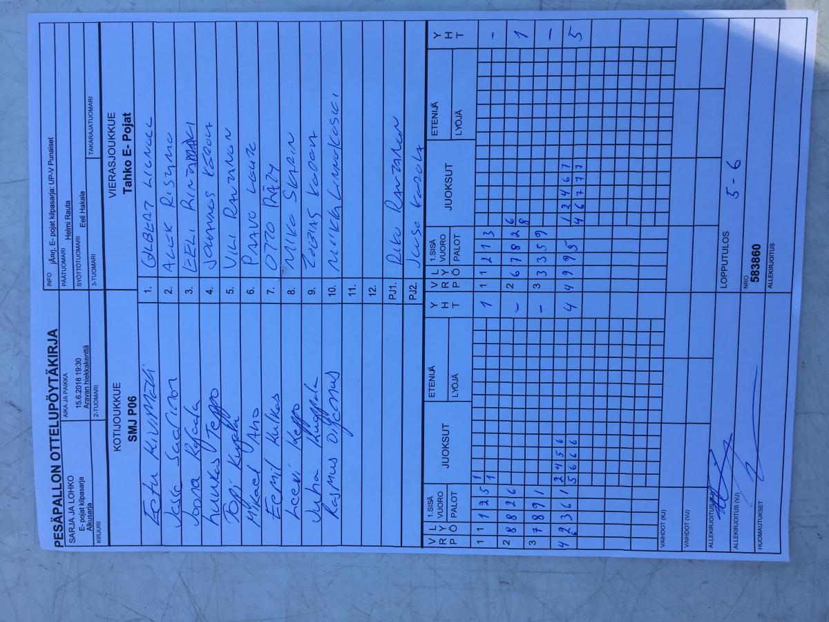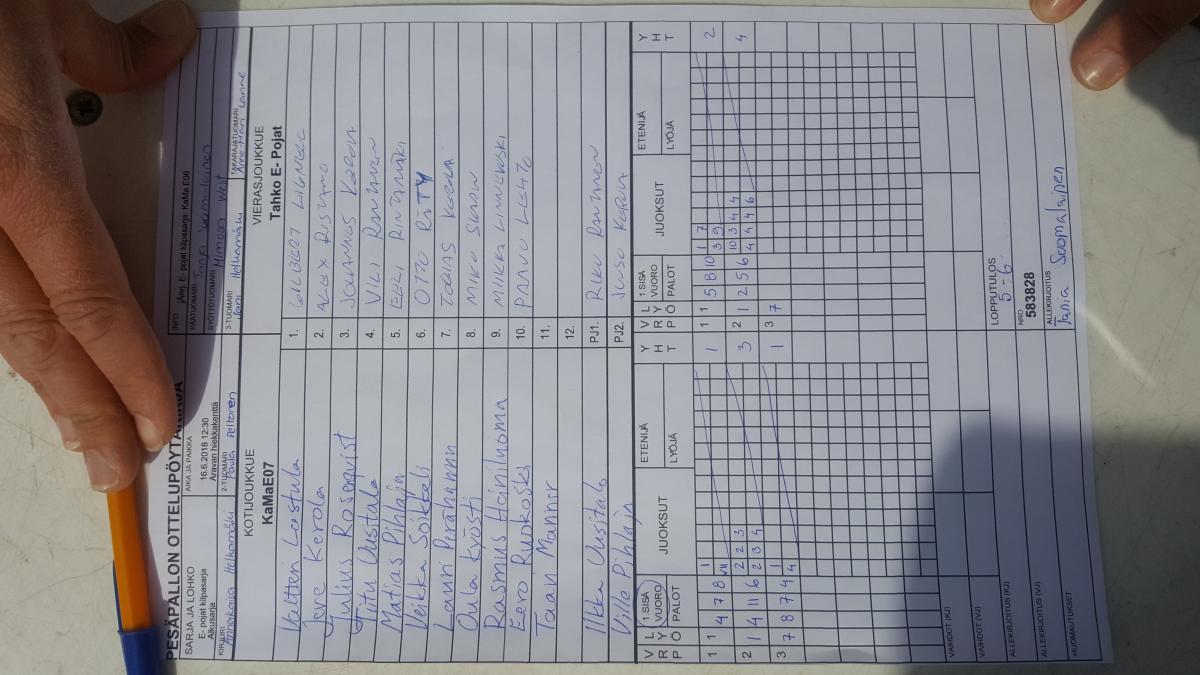 | E- pojat kilpasarja - Alkusarja | 16.6.2018 13:30 | Aravan hiekkakenttä | KaMa E06 | SMJ P06 | Tahko E- Pojat |