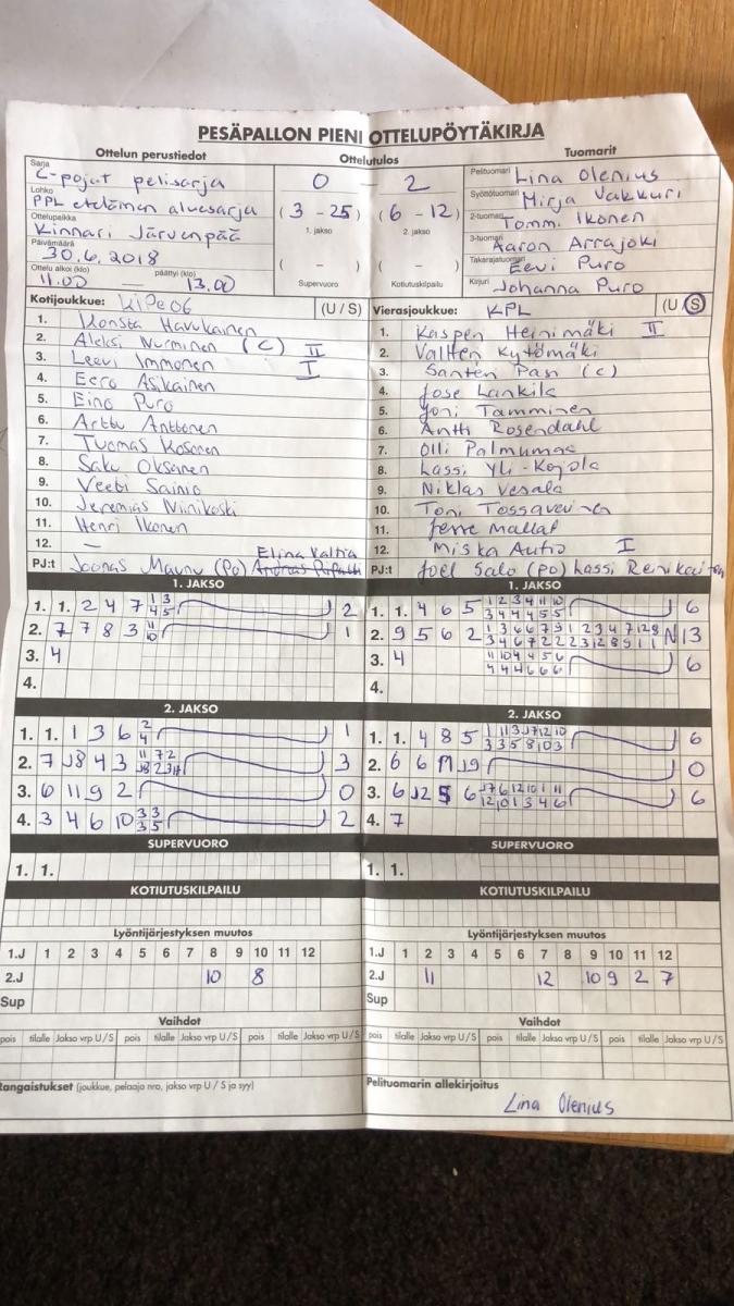 | 30.6.2018 | Kipe06Whites | KPL | 0-2 (3-25, 6-12) | näytä | |