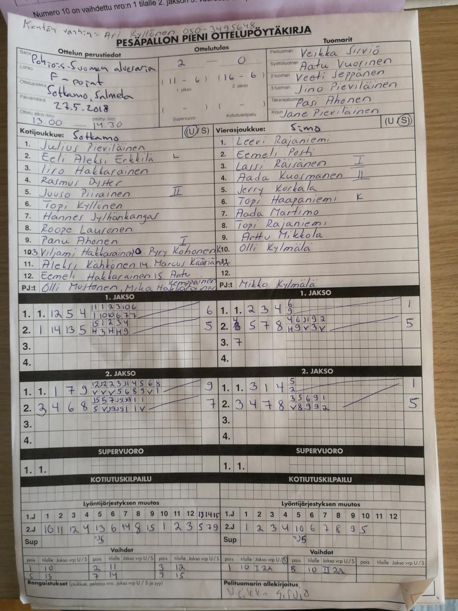 | 7.6.2018 | SoJy | Tornio U | 2-0 (13-7, 14-4) | näytä | |
