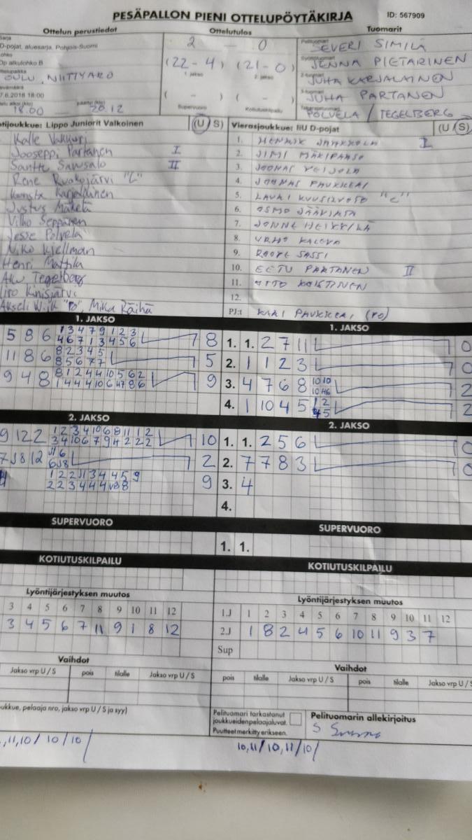 | 27.6.2018 | Lippo Juniorit Valkoinen | IiU D-pojat | 2-0 (22-4, 21-0) | näytä | |