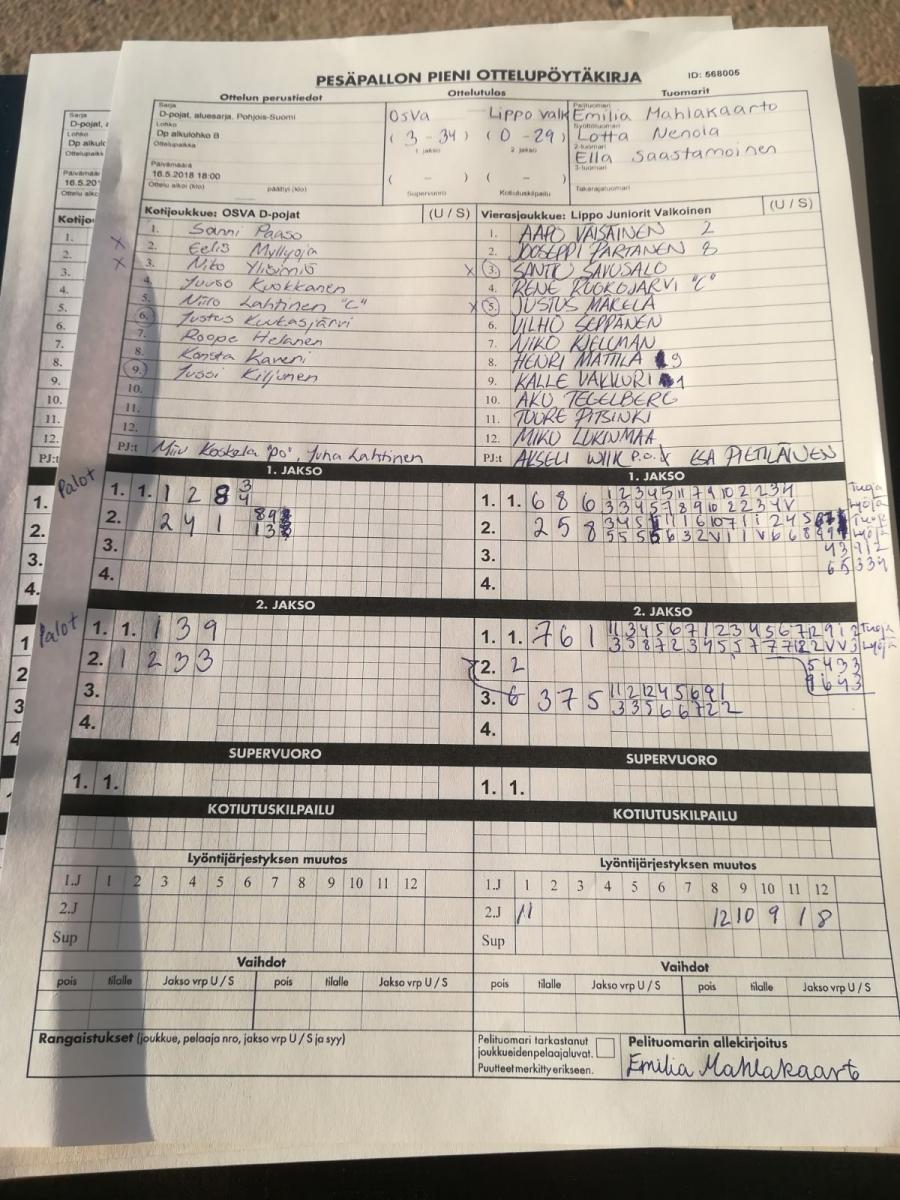 | 16.5.2018 | OSVA D-pojat | Lippo Juniorit Valkoinen | 0-2 (3-34, 0-29) | näytä | |