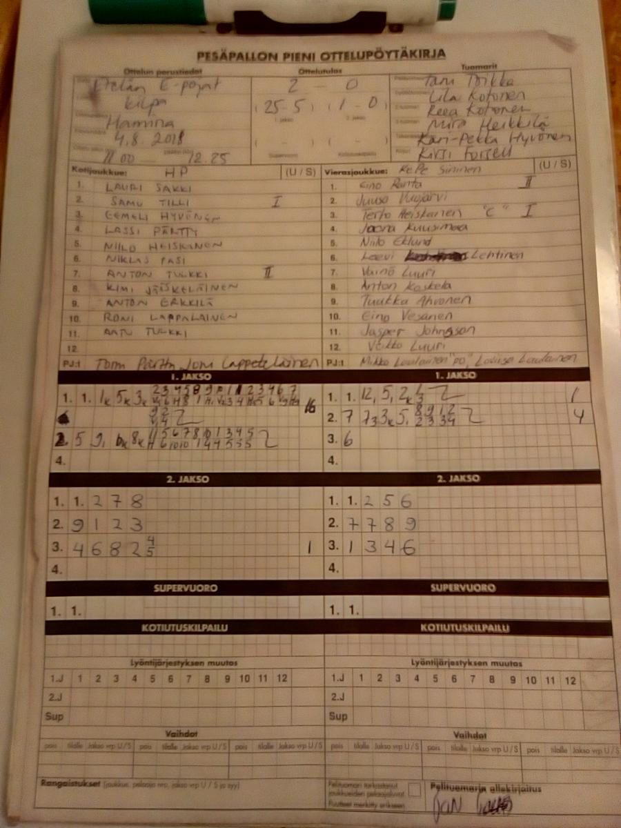 | 4.8.2018 | HP | Kepe Sininen | 2-0 (25-5, 1-0) | näytä | |