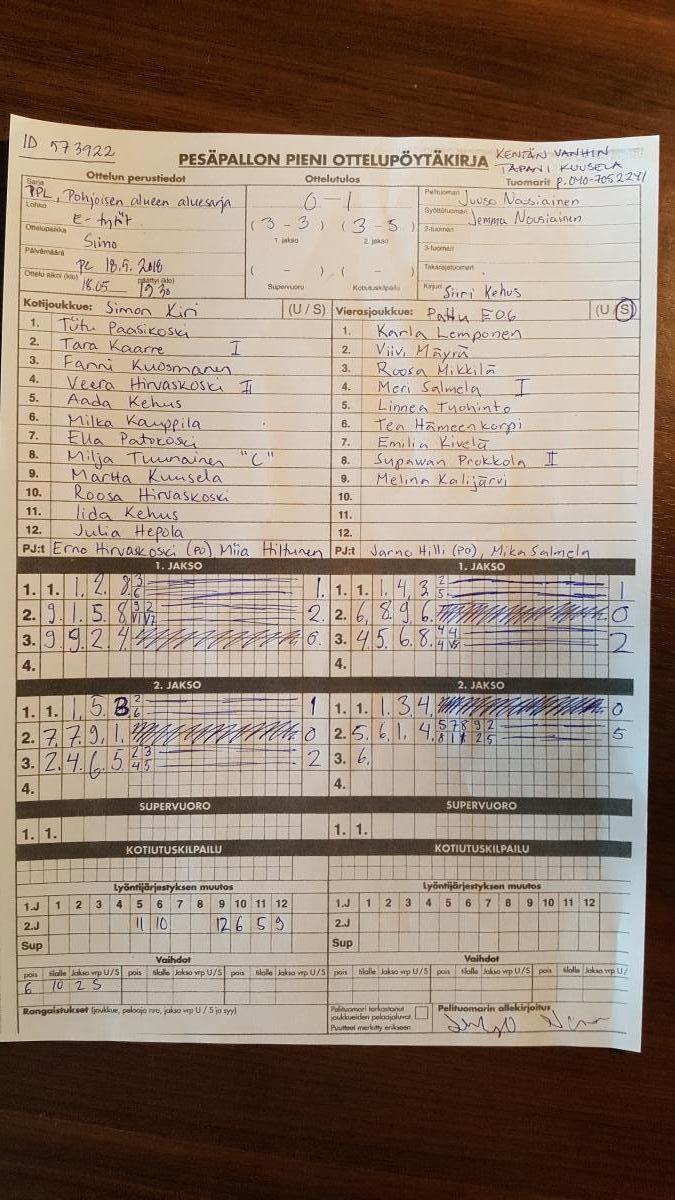| 30.6.2018 | Simon Kiri E-tytöt | Lippo valkoinen | 2-0 (8-3, 9-7) | näytä | |