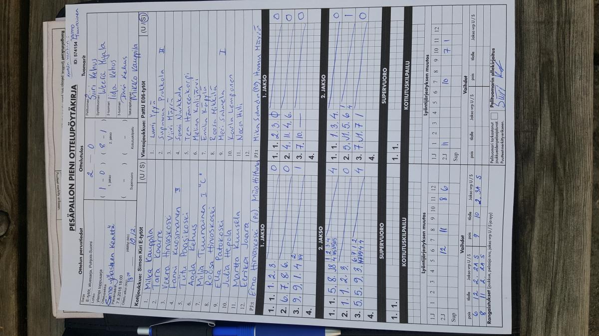 | 11.8.2018 | Lippo valkoinen | Simon Kiri E-tytöt | 1-0 (2-2, 12-1) | näytä | |