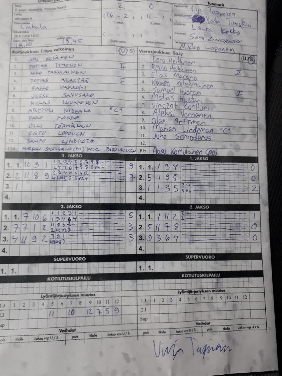 | 15.5.2018 | Keki sininen U | Lippo valkoinen | 0-2 (0-24, 1-21) | näytä | |