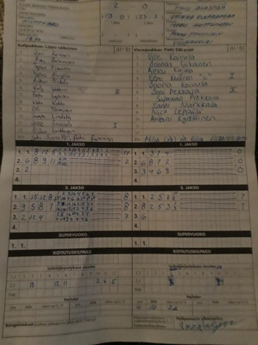 | 28.8.2018 | Lippo valkoinen | PattU E06-pojat | 2-0 (13-0, 23-2) | näytä |