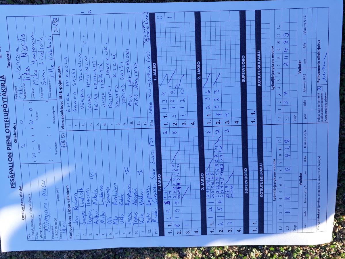 | 7.8.2018 | Lippo valkoinen | IiU E-pojat musta | 2-0 (10-1, 21-0) | näytä | |