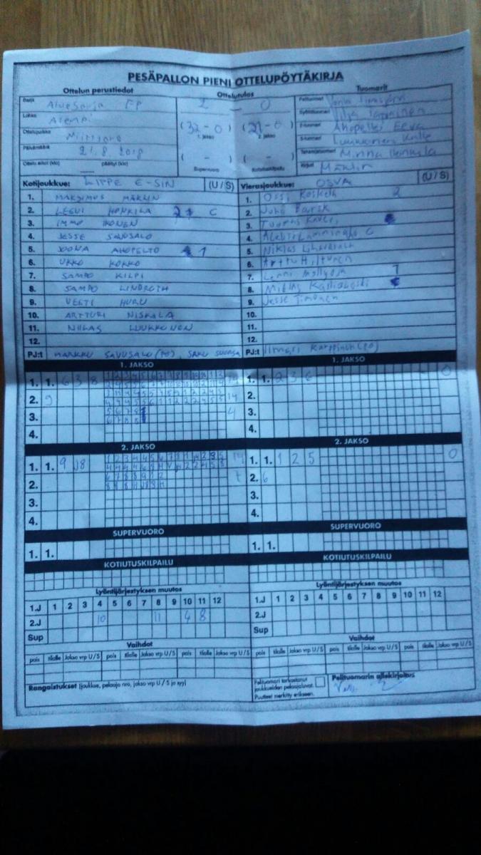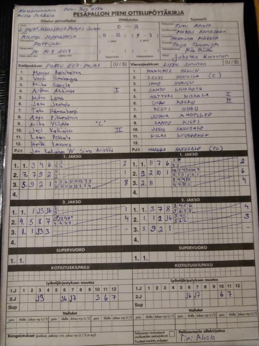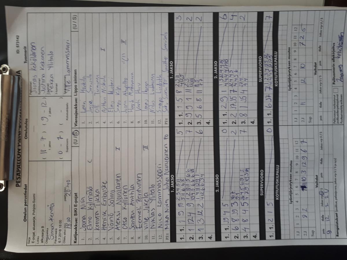 | 6.7.2018 | SiKi E-pojat | Lippo sininen | 1-2 (18-7, 9-12, 0-7) | näytä |