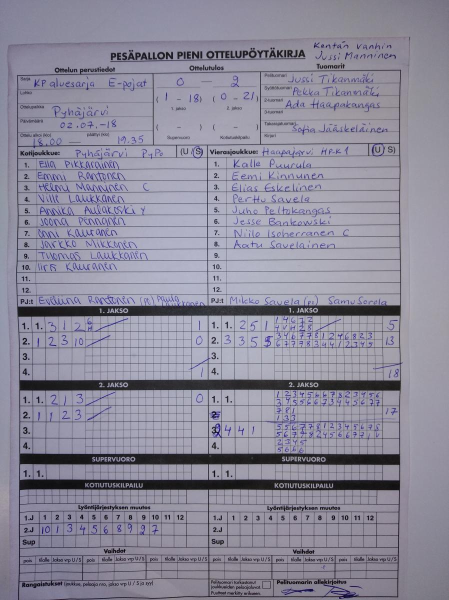 | 4.6.2018 | YK E-07 | HP-K 1 | 0-2 (4-25, 0-10) | näytä | |