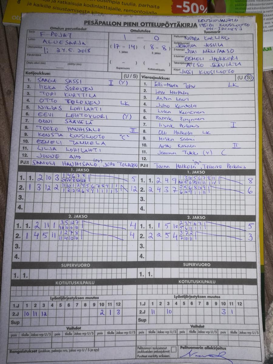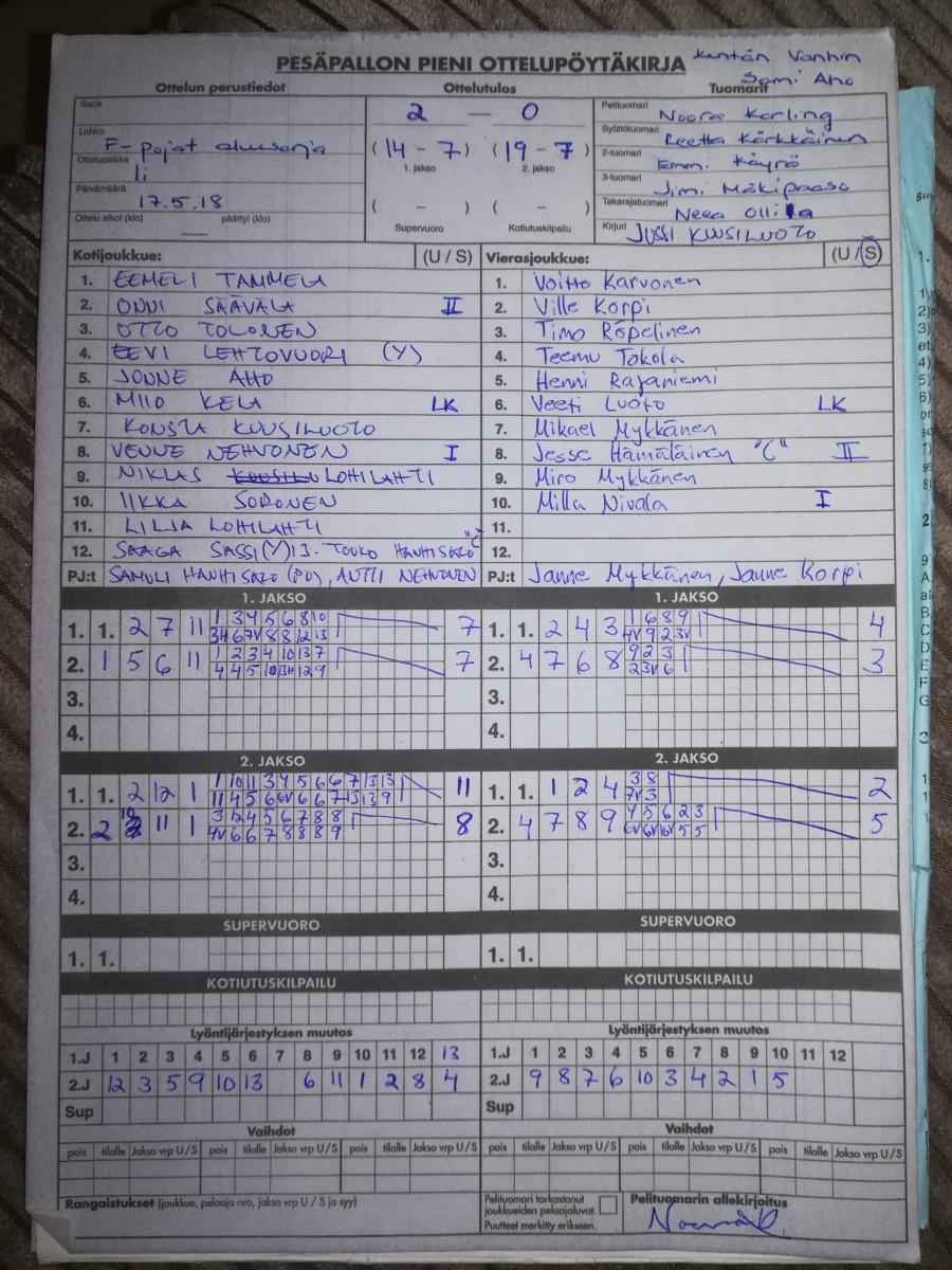 | 22.5.2018 | Keki fp | IiU U | 0-2 (10-14, 9-16) | näytä | |