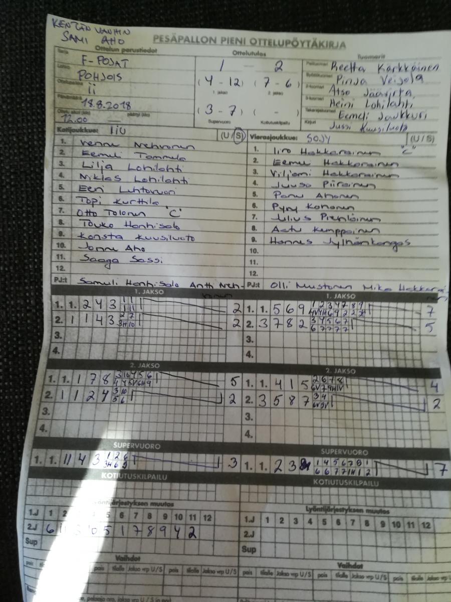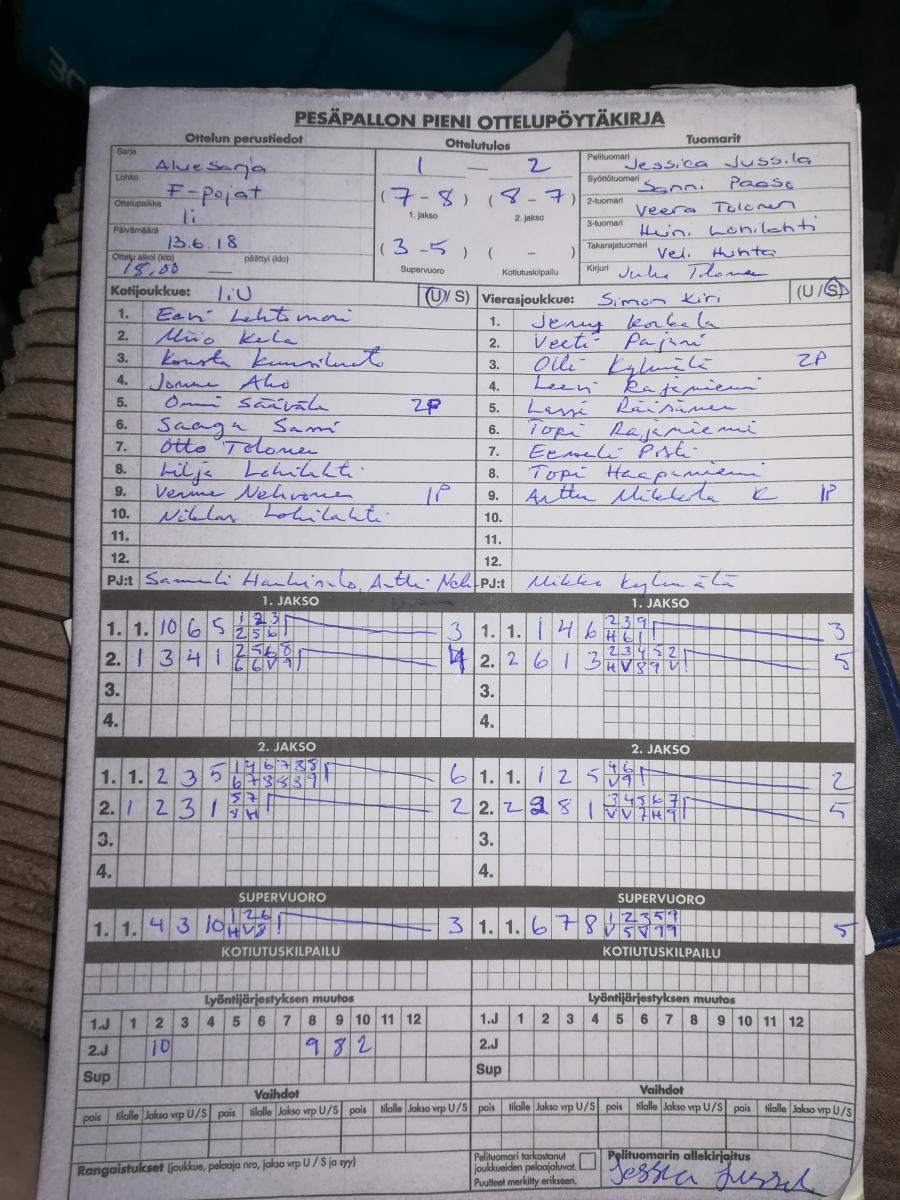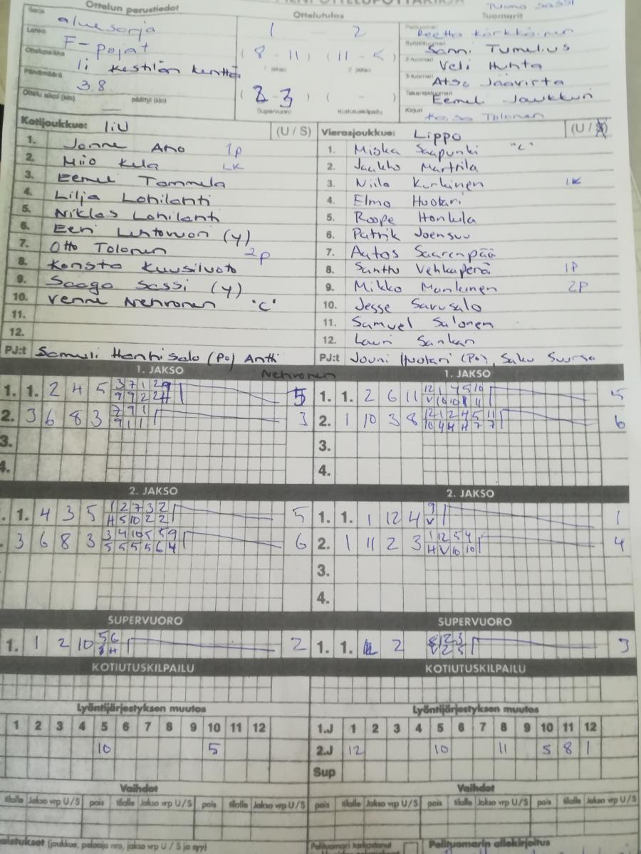 | 3.8.2018 | IiU U | Lippo Juniorit f-pojat | 1-2 (8-11, 11-5, 2-3) | näytä | |