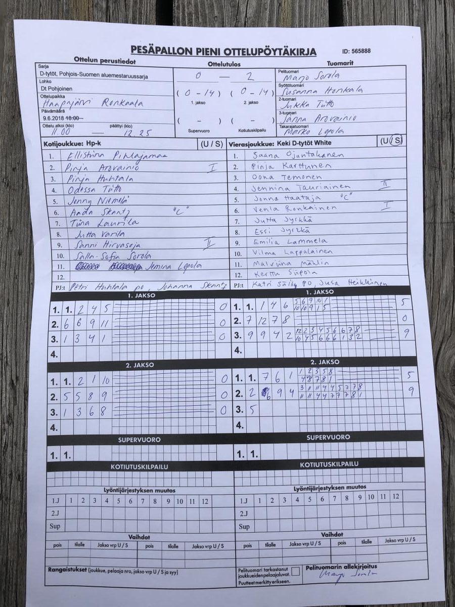 | 9.6.2018 | Hp-k | Keki D-tytöt White | 0-2 (0-14, 0-14) | näytä | |