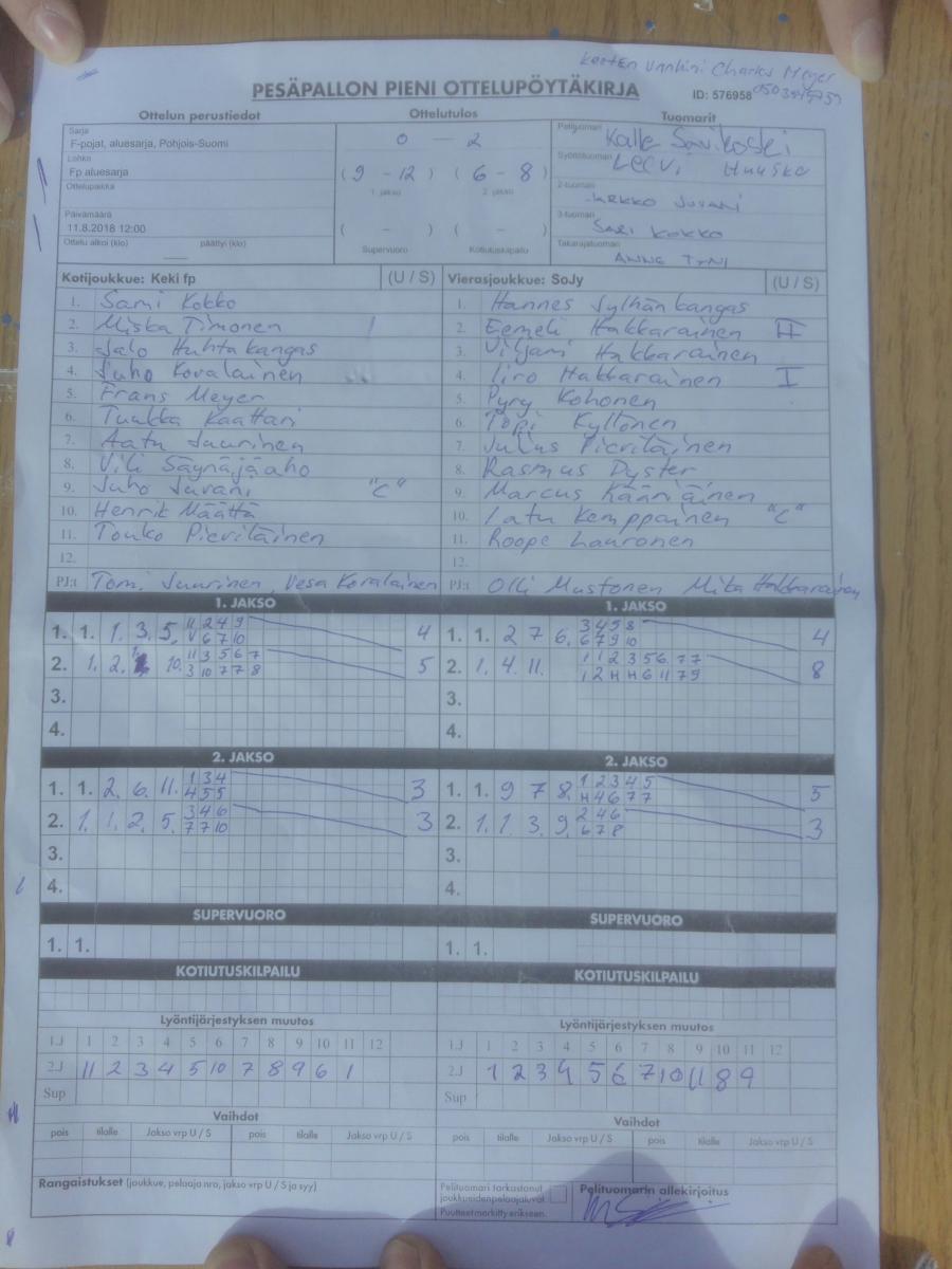 | 7.7.2018 | Tornio U | Keki fp | 0-2 (13-19, 5-8) | näytä | |