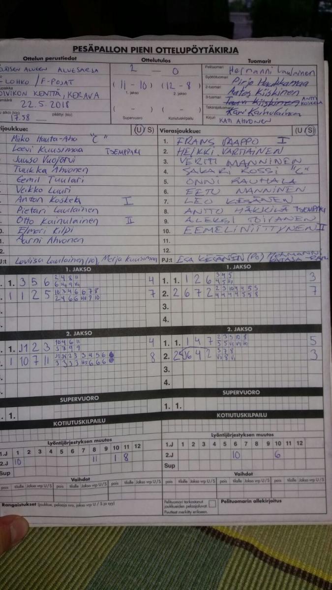 | 22.5.2018 | Kepe F-08 | Espoo | 2-0 (11-10, 12-8) | näytä | |
