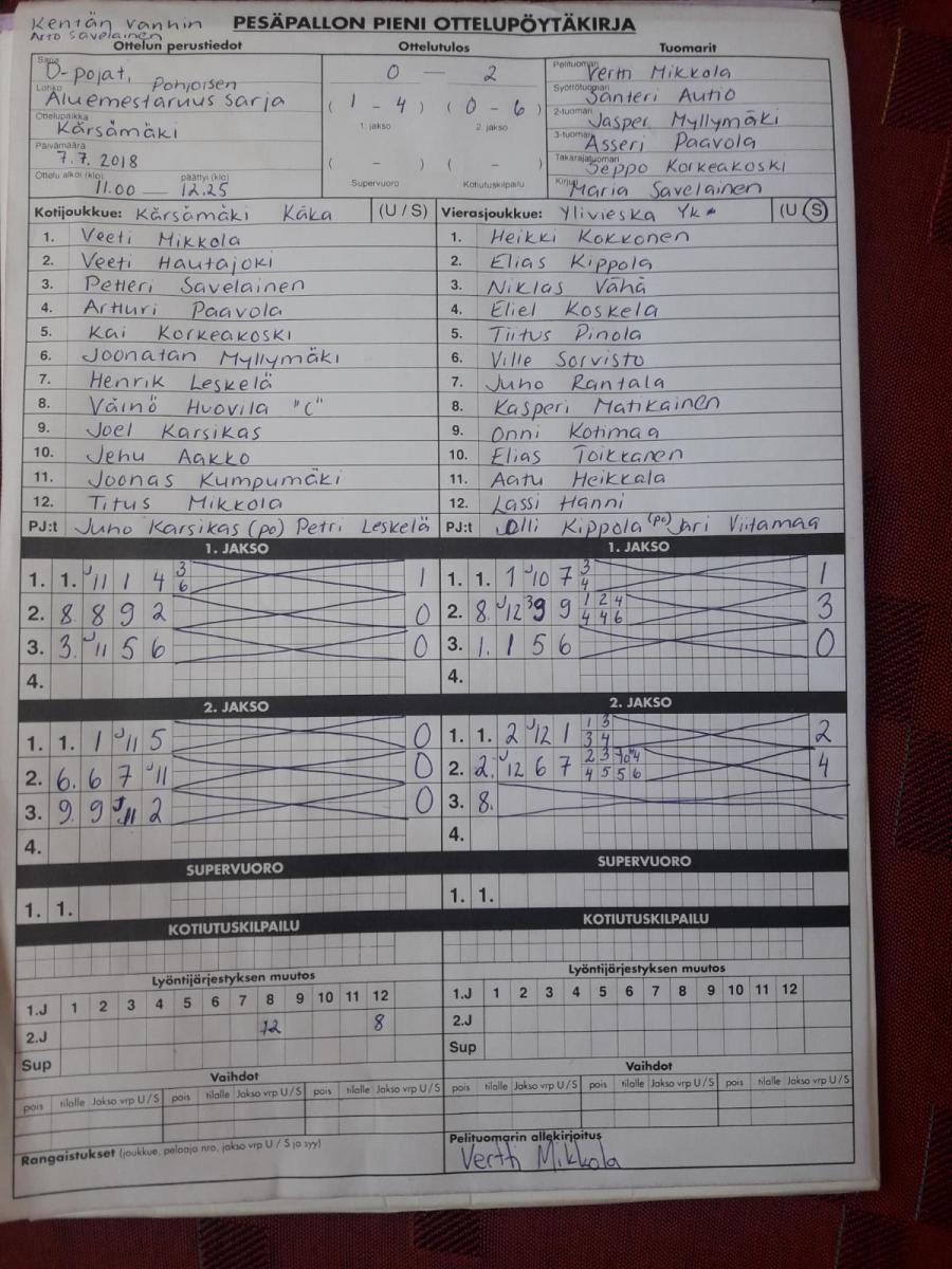 | 7.7.2018 | KäKa | YK | 0-2 (1-4, 0-6) | näytä | |