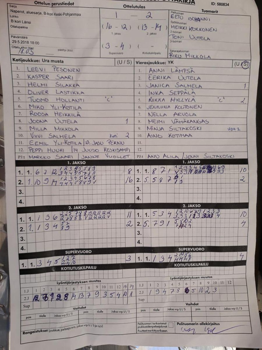 | 29.5.2018 | Ura musta | YK | 1-2 (16-12, 13-14, 3-4) | näytä | |
