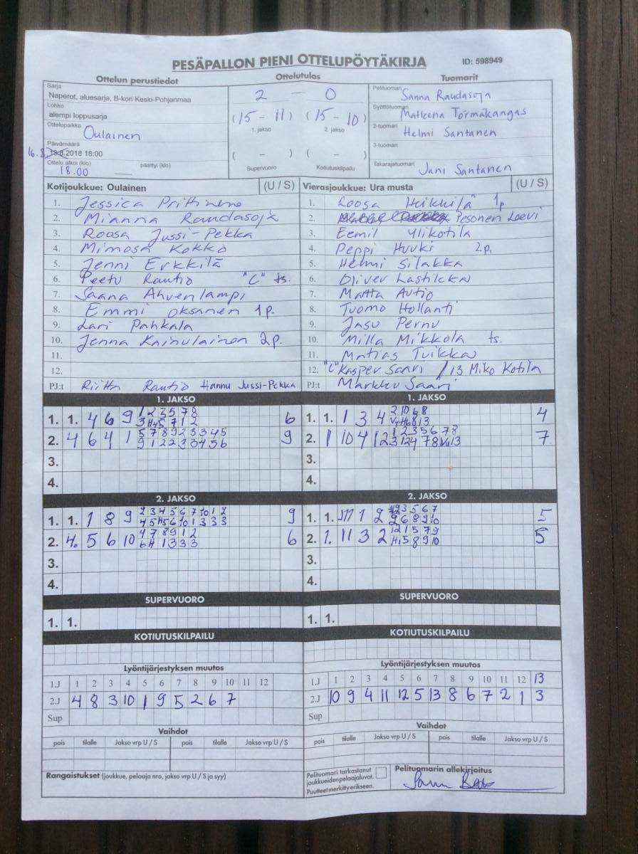 | 4.6.2018 | Oulainen | Ura musta | 0-2 (12-18, 12-15) | näytä | |