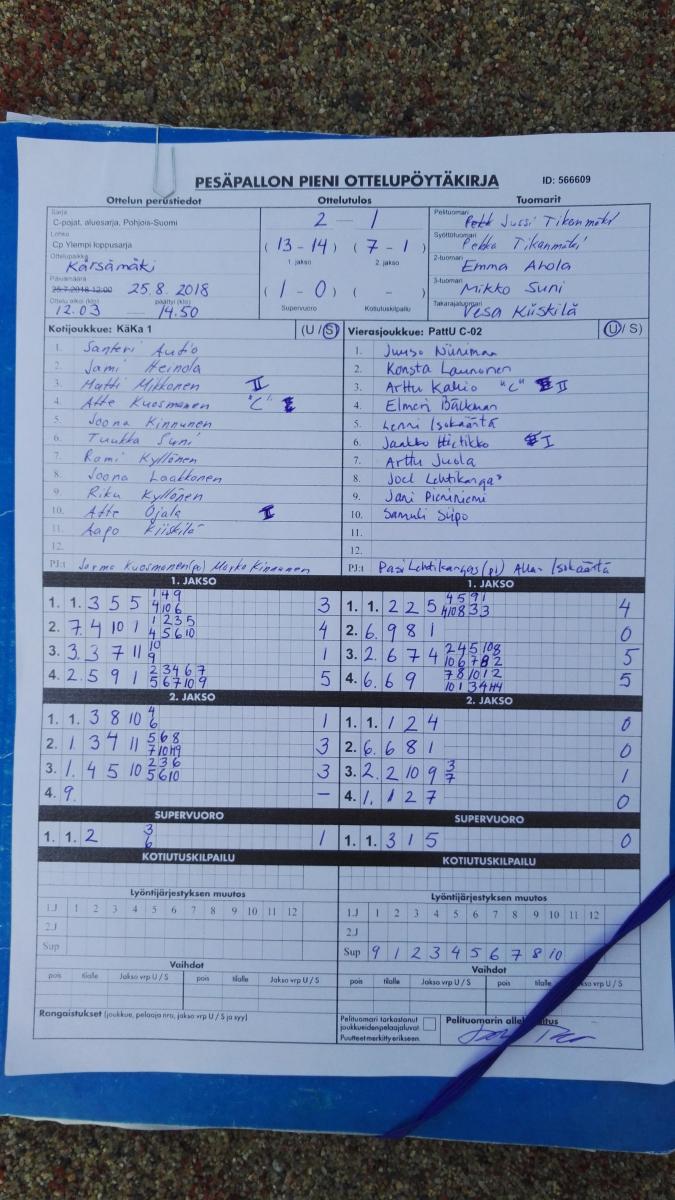 | 25.7.2018 | KäKa 1 | PattU C-02 | 2-1 (13-14, 7-1, 1-0) | näytä | |