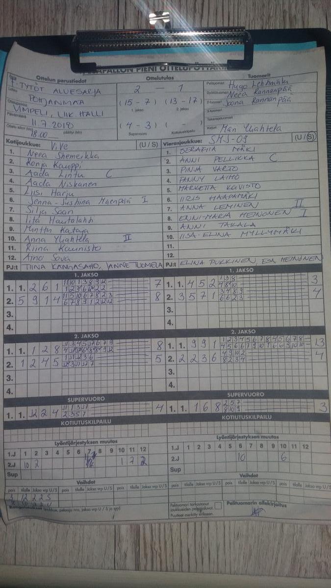 | 11.7.2018 18:00 | ViVe | SMJ T09 | 2-1 (15-7, 13-17, 4-3) | näytä | |