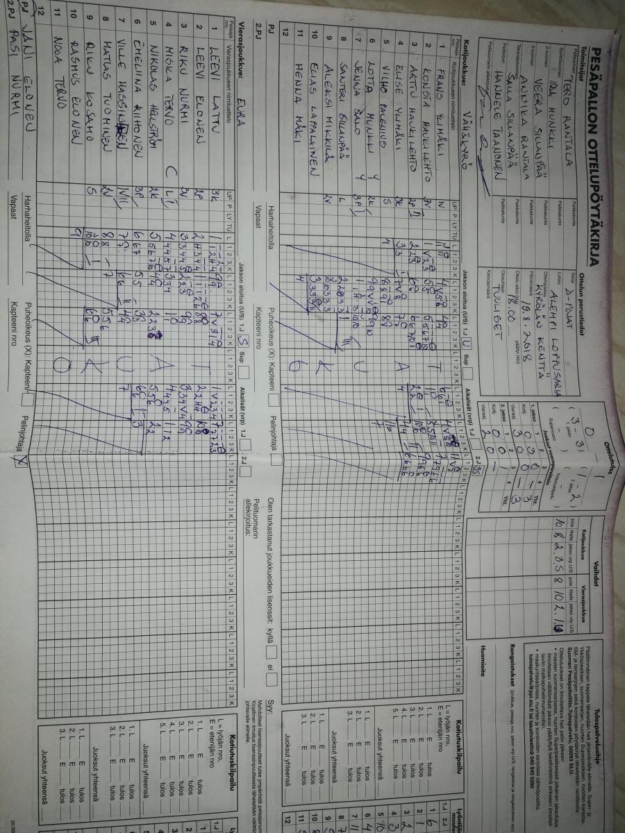 | 31.7.2018 18:00 | AA keltainen | VäVi | 2-0 (17-5, 10-3) | näytä | |