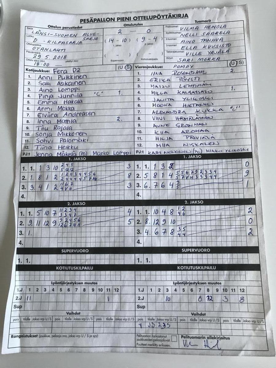 | 7.6.2018 18:00 | Pesäkarhut D-punaiset | PomPy | 2-0 (18-0, 20-0) | näytä | |