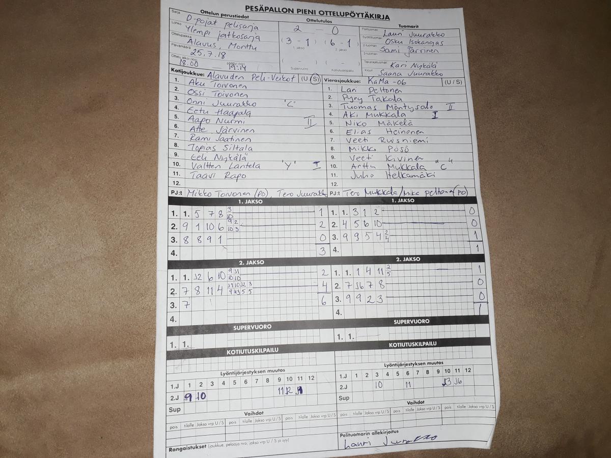 | 25.5.2018 18:00 | KaMa -06 | UP-V E-pojat | 2-0 (21-1, 9-7) | näytä | |