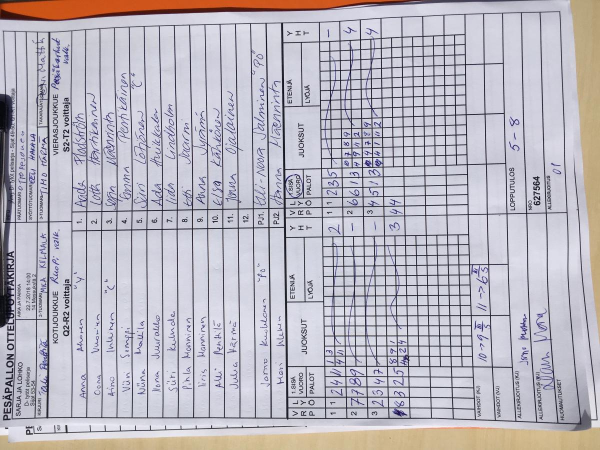 | Lohko D | 21.7.2018 08:30 | 15 Janka | VM oranssi | Espoo White | Pesäkarhut Valkoiset |