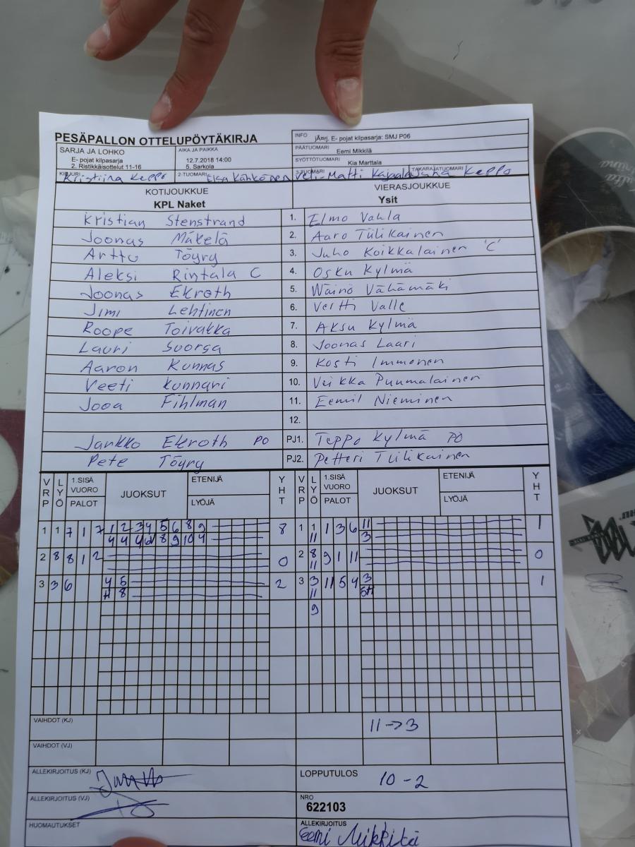 | 12.7.2018 14:00 | 5. Sarkola | KPL Naket | Ysit | 10-2 | näytä |