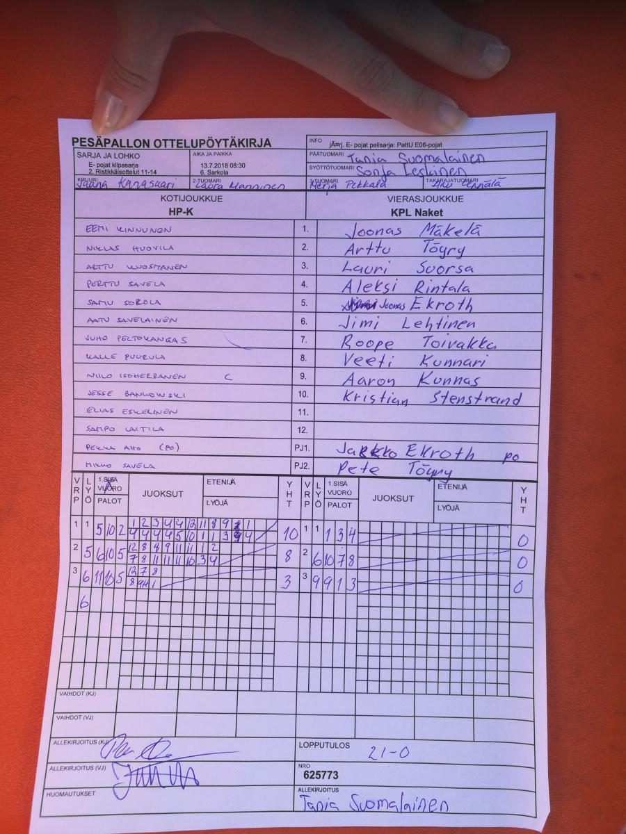 | Lohko U | 11.7.2018 15:00 | 3. Lehtomäki | MansePP E07 pojat | LP | KPL Naket |