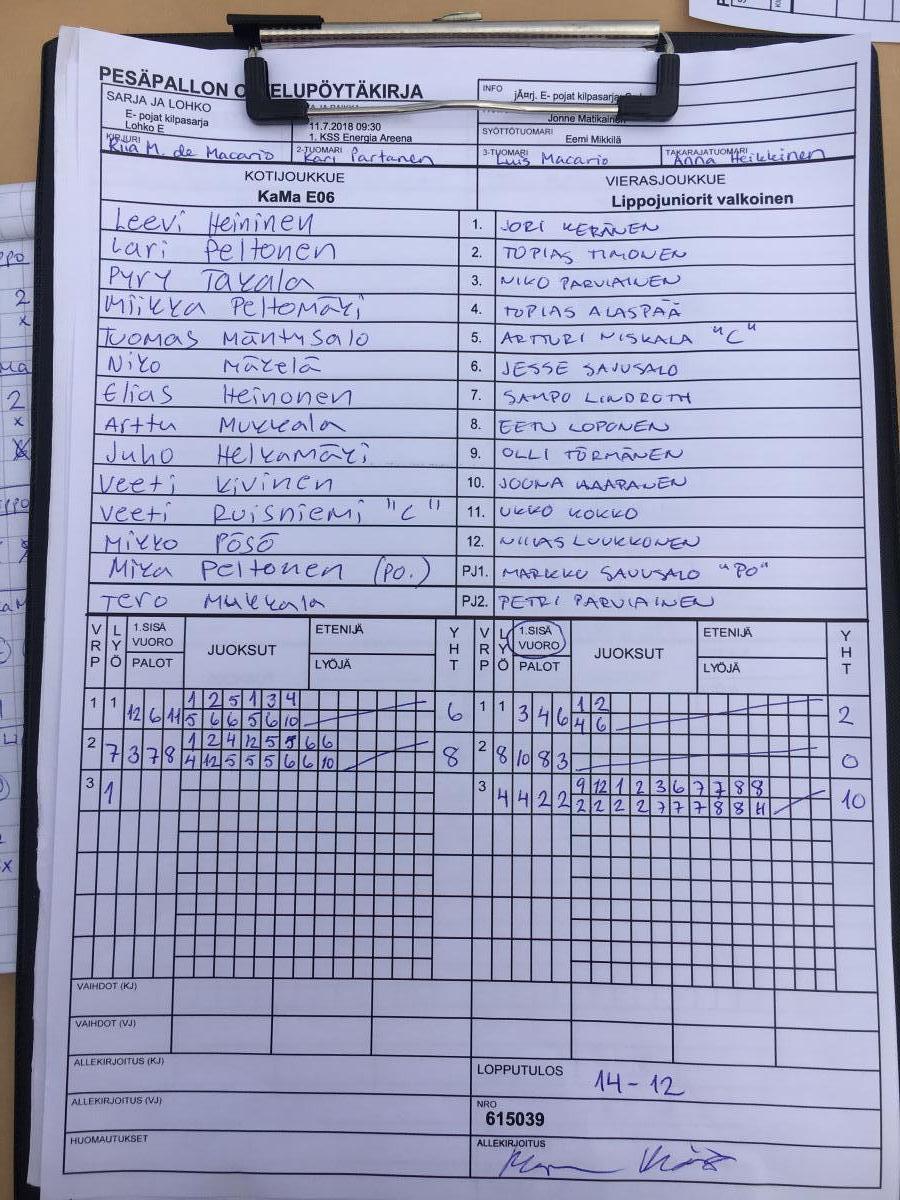 | Lohko E | 11.7.2018 08:30 | 1. KSS Energia Areena | AA -06 | SoJy | KaMa E06 |