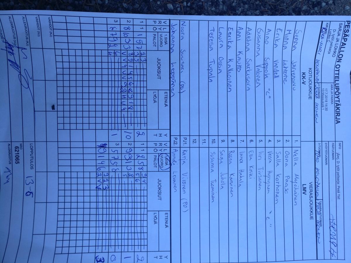 | Lohko C | 20.7.2018 13:00 | 13 Messukylä 1 | Fera 2 | LMV | KK-V |