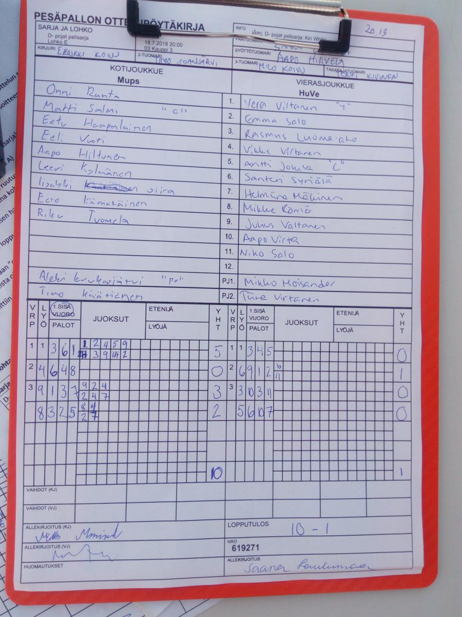 | 18.7.2018 20:00 | 03 Kauppi 3 | Mups | HuVe | 10-1 | näytä |