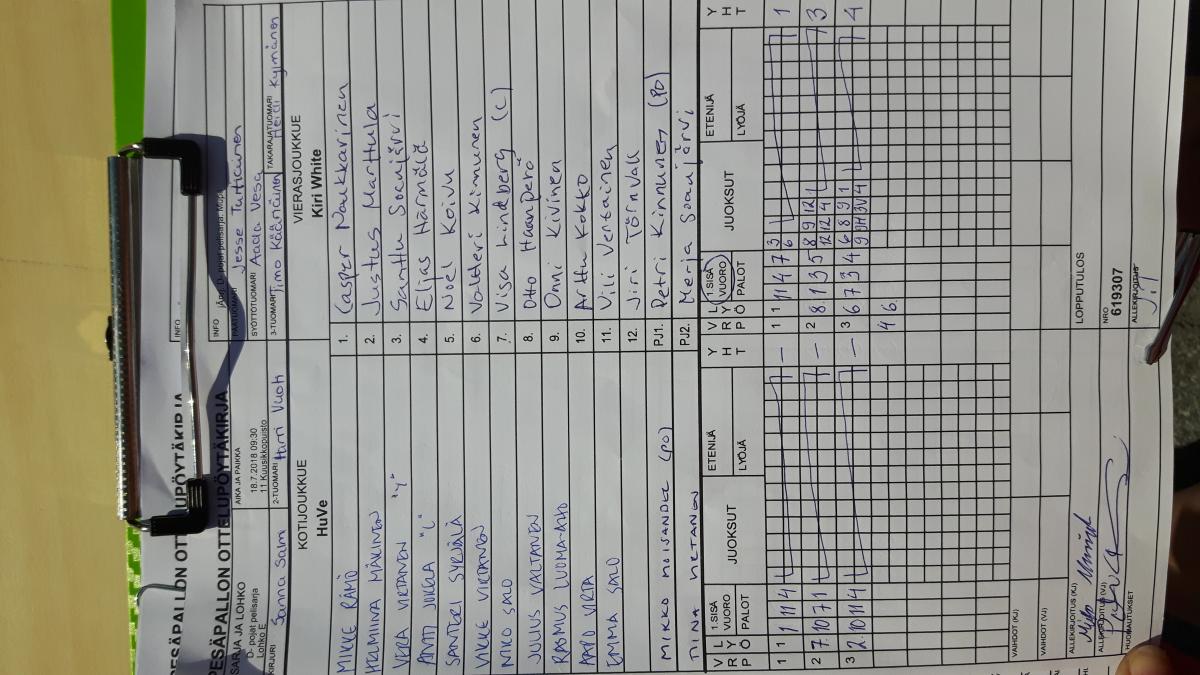 | 18.7.2018 09:30 | 11 Kuusikkopuisto | HuVe | Kiri White | 0-8 | näytä |