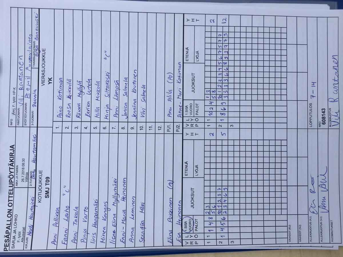 | 26.7.2018 08:30 | Välioja | SMJ T09 | YK | 7-14 | näytä |