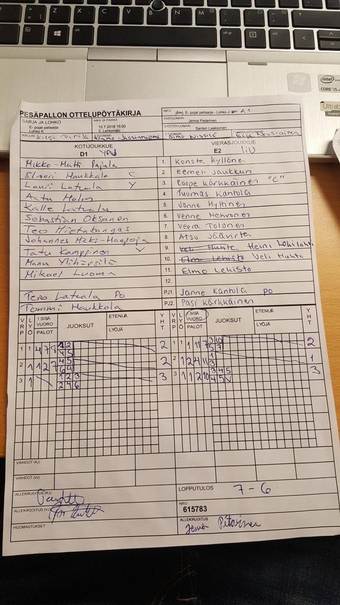 | Lohko T | 12.7.2018 13:00 | 3. Lehtomäki | LaJy E-pojat | Espoo | YPJ |