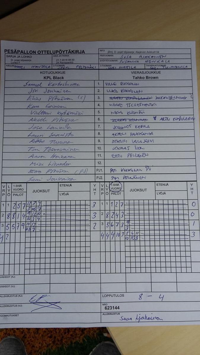 | 19.7.2018 13:00 | 24 Rantaperkiö | Tahko Brown | HP | 4-3 | näytä |