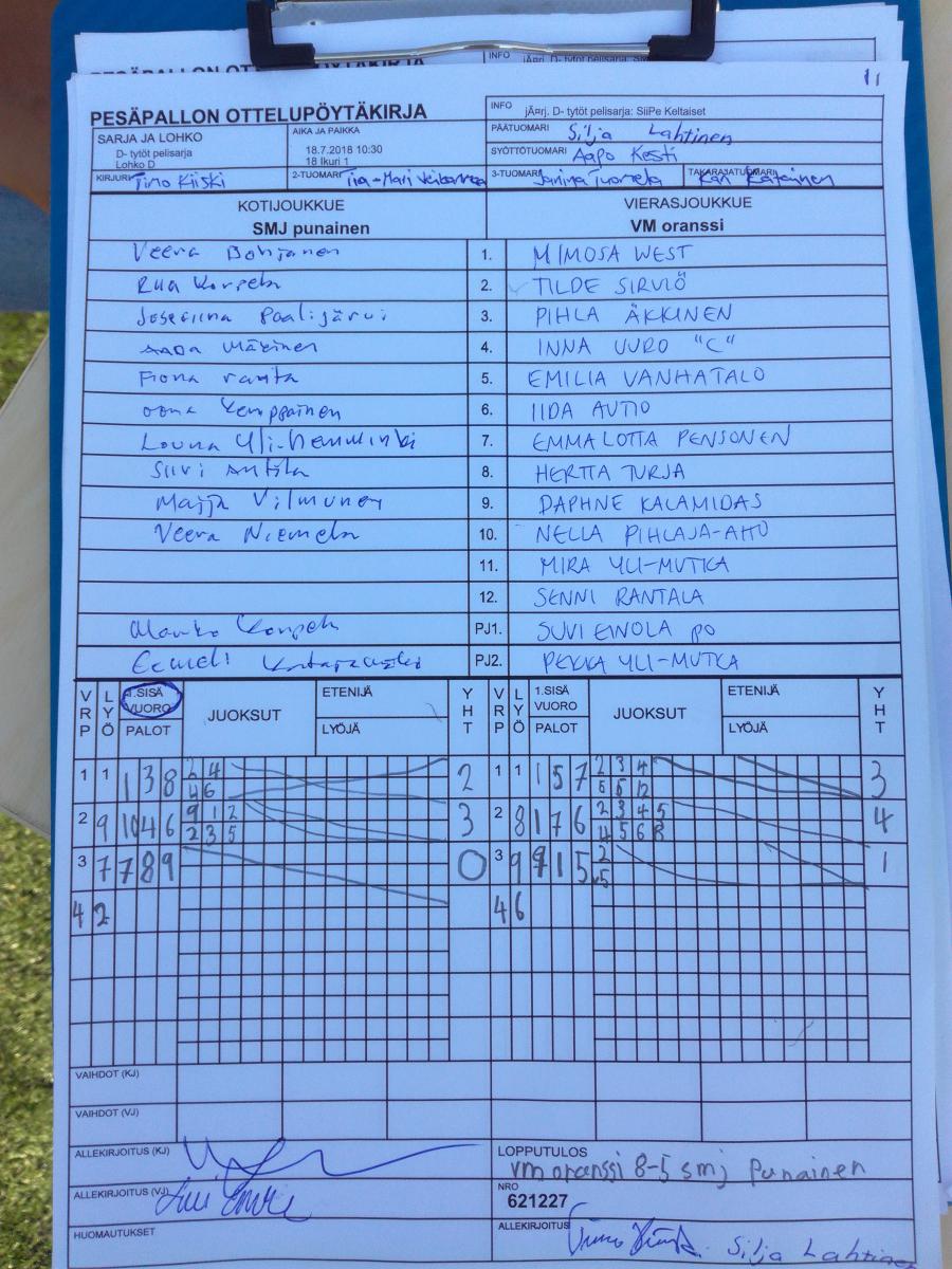 | Lohko C | 19.7.2018 18:00 | 18 Ikuri 1 | Keki Blue | SiiPe Keltaiset | SMJ punainen |